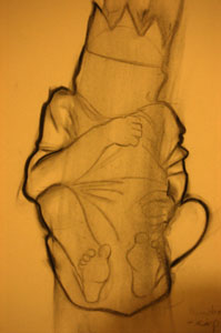 Jenny Wynne Jenny Wynne is a painter, specialising in oil paintings whose working practise is strongly underpinned by drawing. She works as a commissions portraitist and is based on the Wirral. “I draw and paint in fine detail in order to create a formal and accurate study of a subject. I have been practising as a portraitist for six years. I often prefer the quick energy of my preparatory work to my finished hyper-real pieces. This has led to a deconstruction of my usual intricate and detailed work into a more spontaneous and gestural way of painting and drawing. I now work to combine the two styles into finished images that hint at the mechanics and physical matter used in my workmanship. My most recent paintings have been a double act with my 14 months old son! - using his marks and gestures over my own. Drawing feels very physical, re-tracing the body as an image. The movements of a pencil line follow the pits, pores, swell, blush and life of the human anatomy. Paints are fleshy; they have a richness and tactility. It is the uniqueness of every mark and of every person represented in paint or pencil which fascinates me- it is like a fingerprint.” jennywynne@yahoo.co.uk