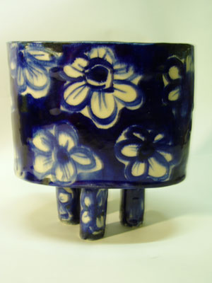 "Japanese style Ikebana vase" 2006 View from front. Glazed porcelain; Cobalt oxide under-glaze painted; fired at 1250 C 22cm x 18 cm x 13 cm £ 62 - SOLD |