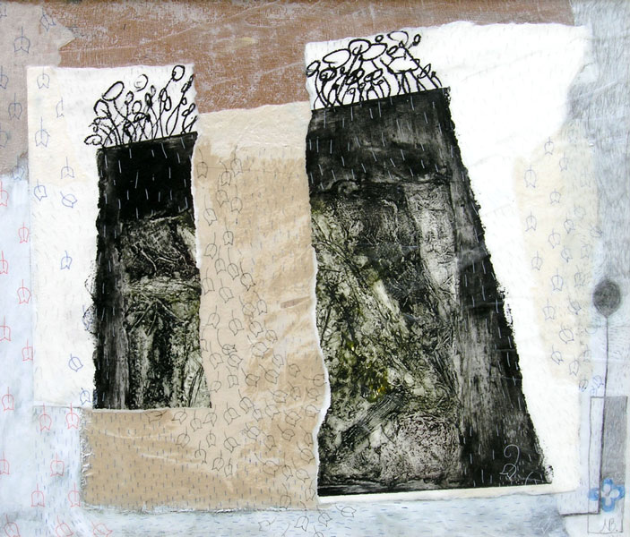 "Composition with forest and falling leaves", 2000 Mixed media, collage on wood board 70cm x 50cm x 2.5cm
