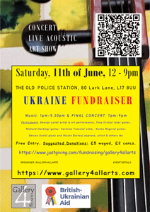 Entry & Donation Proceeds towards British-Ukrainian Aid / in aid of people of UKRAINE 1pm-5pm LIVE ACOUSTIC/ RECITALS & 7pm-9pm CLOSING CONCERT As part of: "ARTISTS & MUSICIANS FUNDRAISING IN AID OF people of UKRAINE / British-Ukrainian Aid)"